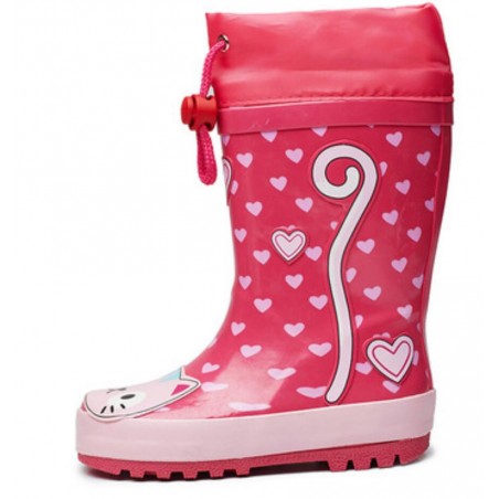 Girls Rubber Gumboots - Red Kitten Hearts